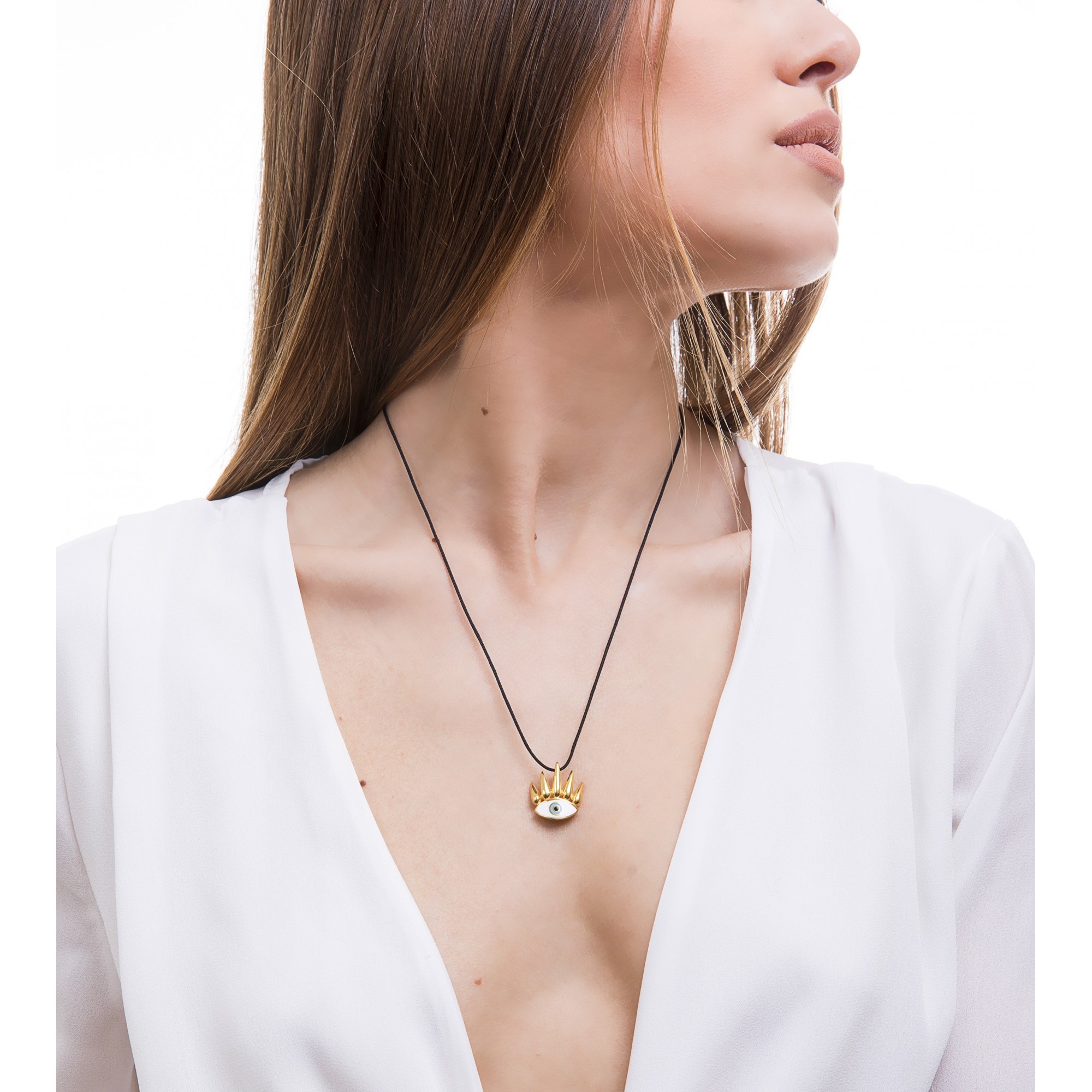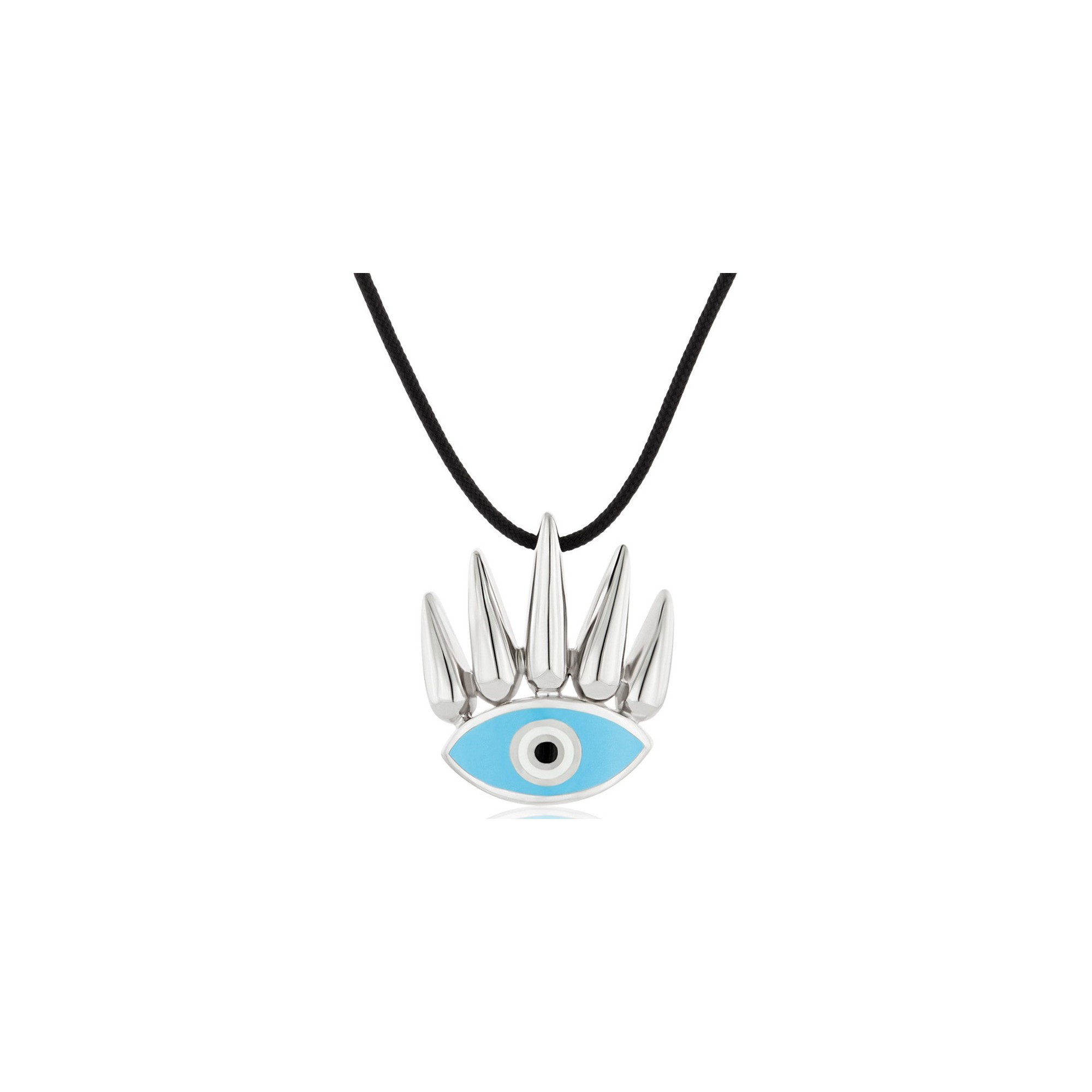 Eye of the Sun κρεμαστό από ασήμι 925° επιπλατινωμένο με ρόδιο και μπλε σμάλτο με ρυθμιζόμενο κορδόνι από την Honor Omano.